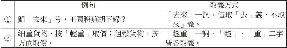 14. 參閱下表,判斷下列甲、乙二句「」內詞語的取義方式,選出正確選項: