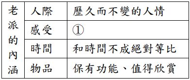 17. 下列表格是對下文內容的摘要,請閱讀下文,判斷表格中的①最適合填入何者?