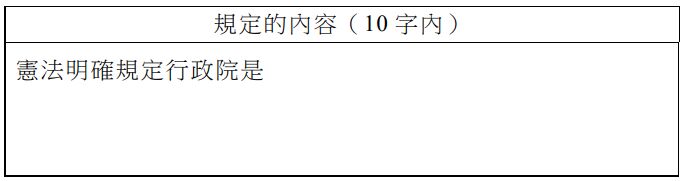 40. 依據該學者的意見,我國憲法關於行政院位階的明確規定,其所指為何?請在答題卷作答表格中寫出該項規定的內容。(3 分) 規定的內容(10 字內)