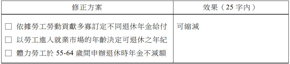 42. 依據題文,下列哪項修正方案最能直接回應甲的擔心及主張?請在左欄勾選方案,並於右欄寫出該方案可達成的具體效果。(3 分,左欄勾選正確,右欄始計分;右欄僅抄錄題文,不計分)