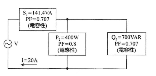 11.如圖所示電路,已知量測電路中三個未知負載的功率因數PF及各負載的功率S或功率P或虛功率Q,試求總電路電壓V的大小為:(A)14.1V(B)65V(C)81V(D)100V