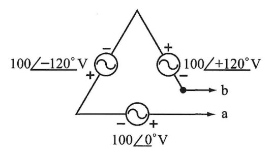 12.如圖所示電路,若將圖中 \( 100\angle 0° \) 之電源拆開後,則 \( V_{ab} \) 為:(A)0(B) \( 100\angle 0° \) V(C) \( 200\angle 0° \) V(D) \( 200\angle 180° \) V