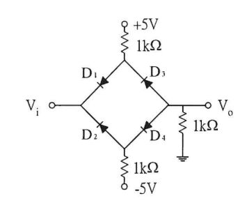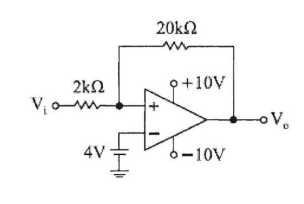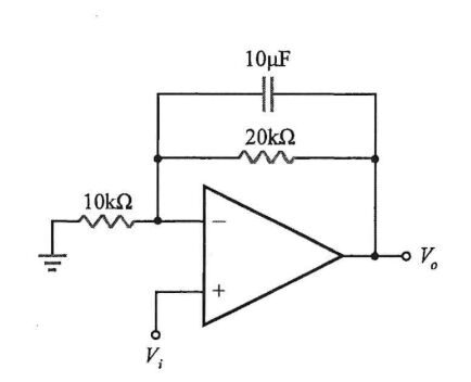 23.如圖所示電路,若 \( V_i=+5V \),求 \( V_o \) 為?(A)-2.5V(B)+2.5V(C)-5V(D)+5V