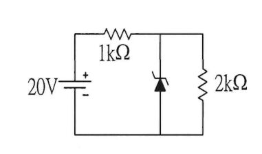 22.如圖所示電路,穩壓二極體(Zener)崩潰電壓 \( V_Z=8V \),此穩壓二極體之消耗功率大小為多少?
