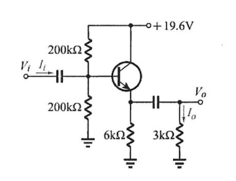 24.如圖所示電路,電晶體工作於作用區,β=99,\( V_{BE}=0.7V \),熱電壓(thermal voltage) \( V_T=26mV \),則此放大電路之電流增益 \( A_i = I_o \/ I_i \) 約為何值?