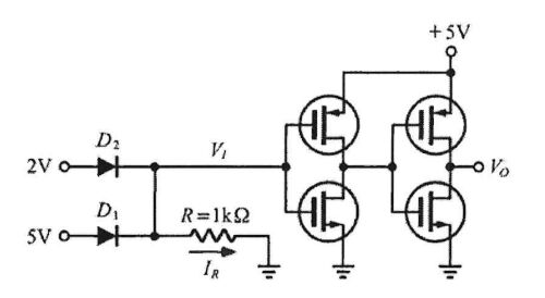 27.如圖所示電路,假設二極體切入電壓為0V時,試求流經電阻R上的電流 \( I_R \) 與輸出電壓 \( V_o \) 各為何?(A)5mA,0V(B)2mA,0V(C)2mA,5V(D)5mA,5V