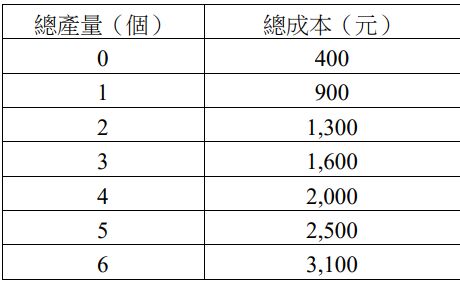 19 下表為某廠商短期生產的成本資料。其他條件不變下,當產量為下列何者時開始出現邊際報酬遞減現象? (A)1 (B)2 (C)4 (D)5
