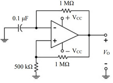 39 圖示為一無穩態多諧振盪電路,電路中運算放大器之輸出飽和電壓為±12 V,則其正回授迴路之下臨界電壓(voltage of lower threshold)VTL 值為何? (A)-4 V (B)-6 V (C)-8 V (D)-12 V