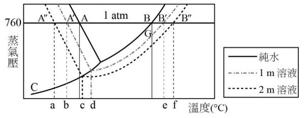 1. 下圖為 1 m、2 m 葡萄糖水及純水的三相圖(已知水的 Kb=0.52,Kf =1.86),試依附圖求出的蒸氣壓變化量 ?_______