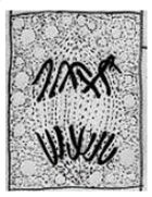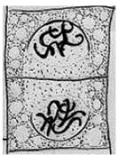 28.為了探討有絲分裂的現象,學生們觀察洋蔥根尖的切片。他們將已進入細胞分裂階段的細胞歸納如選項(A)~(E)所示之五個典型的樣態,並以此五個樣態依序代表細胞分裂階段中的五個進程。依推論,下列哪一進程最早形成2倍量的DNA?