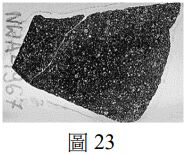 55.在做隕石定年時,必須挑出隕石中在太陽系早期即完成結晶、且其同位素未被後續作用重置或改變的礦物分別定年,而非使用隕石整體。假設某科學家在對圖23隕石中的礦物定年分析後,得到一個超過太陽系年齡的結果。下列何者是得出此結果最有可能的原因?
