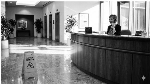 58. What is the woman responsible for? (A) Fixing the machine (B) Communicating about the delay (C) Hiring new workers (D) Cleaning the facility