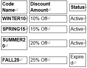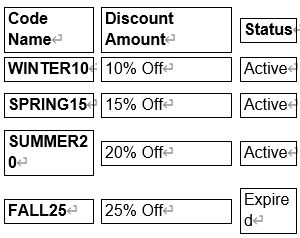 90.Look at the graphic. Which code needs to be deactivated?(A) WINTER10(B) SPRING15(C) SUMMER20(D) FALL25