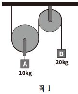 12. 如圖 1 所示之滑車系統,物體 A 懸掛於動滑輪下方,物體 B 懸掛於繩端。已知:mA = 10 kg、mB = 20 kg 滑輪與繩皆為理想狀態(無摩擦、無重量),g = 10 m/s2。若系統由靜止釋放,則下列何者正確? (A)物體 B 向下加速 2 m/s2,繩之張力為 120 N (B)物體 B 向下加速 4 m/s2,繩之張力為 120 N (C)物體 B 向下加速 4 m/s2,繩之張力為 60 N (D)物體 B 向上加速 4 m/s2,繩之張力為 100 N