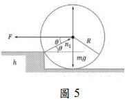 20. 如圖 5 所示,一均質滾子重 W = 1200 N,半徑 R = 0.20 m。地面上有一高度 h = 0.05m 的小障礙塊。現於滾子圓心施加一水平推力 F,欲使滾子恰可越過障礙塊。試問所需最小推力 F 為何? (A)860 N (B)1060 N (C)1260 N (D)1460 N