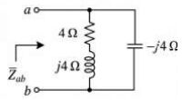 12. 如下圖所示電路,電路總阻抗 Zab=?及電路屬何種負載? (A) 4+j4 電容性 (B) 4-j4 電感性 (C) 4-j4 電容性 (D) 4 電阻性