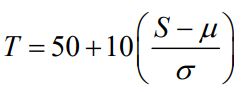 9. T 分數為評量成績的一種方式,其計算方式如下:設全班平均成績為μ 且標準差為σ。 若某生原始成績為 S,則他該科之 T 分數為 已知某班期末數學和 英文兩科的平均成績皆為 60,數學成績的標準差為 12,英文成績的標準差為 8。試選出正確的選項。 (A) 若甲生英文的原始成績為 52,則其 T 分數為 40 (B) 各生數學的 T 分數不會超過其原始成績 (C) 若乙生兩科的原始成績平均比丙生兩科的原始成績平均高,則乙生兩科的 T 分數 平均比丙生兩科的 T 分數平均高 (D) 若該班級兩科的及格標準均為 T 分數大於或等於 40,則數學及格的原始成績比 英文及格的原始成績低 (E) 該班原始成績數學對英文的迴歸直線(即最適直線)之斜率與該班 T 分數數學對 英文的迴歸直線之斜率相同