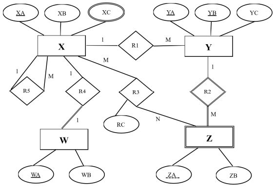 二、將下列 ERD 轉換成資料庫綱目(Database Schema),在各個關聯綱目中,須標示主要鍵和外來鍵之參考。(25 分)