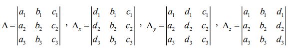 1.方程組 , 令。 試證:若方程組之幾何意義為「三平面兩兩相交於一直線,且三直線互相平行」, 則 △= 0 且△x 、 △y、△ z 至少有一不為 0。 (6 分)