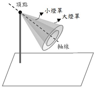 11. 有一立燈為了採光,採用兩個可以替換的大、小燈罩。兩燈罩皆為直圓錐面的一部分, 裝在燈上其軸線位置相同、燈源皆在頂點,且大燈罩照射在地面上的光線範圍大於小燈罩 的光線範圍,如圖所示。令大、小燈罩在地面上所成的光線邊緣分別為圓錐曲線 Γ、 γ的一部分。試選出正確的選項。 (A) 如果Γ是橢圓,則 γ是拋物線 (B) 如果Γ是拋物線,則γ是橢圓 (C) 如果Γ是雙曲線,則 γ是拋物線 (D) 如果γ是拋物線,則Γ 是拋物線 (E) 如果γ是雙曲線,則 Γ是雙曲線