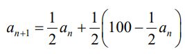 12. 有兩容器,A 瓶內有含糖 100 公克的紅茶 1000 毫升,B 瓶內有不含糖的紅茶 500 毫升。用以下方式稀釋 A 瓶的甜度:將 A 瓶混合均勻後,倒出 500 毫升至 B 瓶,再將 B 瓶 混合均勻後,倒 500 毫升回 A 瓶,稱此為一次稀釋。重複此稀釋動作,令第 n次稀釋 完,A 瓶的含糖量為 an 公克。試選出正確的選項。 (A) a1= 75 (B) 第 n次稀釋完,B 瓶的含糖量為公克 (C) (D) 可找到實數 c 滿足數列 〈an-c〉為公比是的等比數列 (E) 第 100 次稀釋完,A 瓶的含糖量小於 60 公克