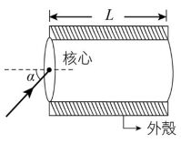 2.一光纖管長L,光纖核心部分折射率為n₁,外殼部分折射率為n₂。光在真空中傳播速率為c,今以入射角α由真空射入核心,若入射光僅在光纖管核心部分傳播,則正弦值sinα須小於何值?