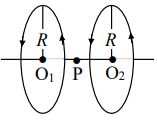 (2)兩半徑皆為R的單匝圓形線圈組合成亥姆霍茲(Helmholtz)線圈,軸線重合,通上同方向電流I。如果兩線圈面的距離亦為R,兩線圈中點P的磁場量值為何?