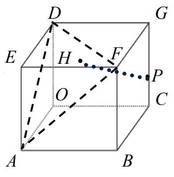 8. 坐標空間中有一個稜長為 1 的正立方體 OABC-DEFG,示意圖如右圖。 P 點在上,且 =1: 2,若 P 點在平面 ADF 上的投影點為 H 點, 求 H 點到平面 OABC 的最短距離=_________ 。