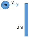 7.一球質量 m 以初速 v 往右飛行,與一根長 L 的均勻棒質量 2m 上端彈性碰撞,不考慮重力 且碰撞時間極小,請問棒子碰撞後,移動的速度為何?