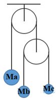 二、申論題1.如圖所示,滑輪與繩子的重量及摩擦均不計,求出 Ma、Mb 與 Mc 的加速度量值與方向各為多少?(已知 Ma、Mb 與 Mc 的質量比為 3:2:1, 且重力加速度值為 g)