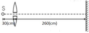 2.如圖所示,將一個焦距為 20(cm)的薄透鏡,剖半成上下兩塊,並讓兩塊透鏡中間留 0.02(cm)的孔縫。在此透鏡組的前方 30(cm)處放一波長為600(nm)點光源,後方 260(cm)處放一屏幕,試求出屏幕上,干涉條紋的間距為多少?