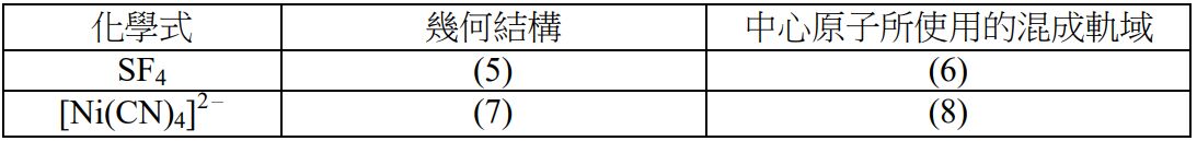 5. 某多電子原子之最後一電子之四種量子數為 n=4,l=1,m=1,s=-(m、s 均以正號為先),則此元素為 (14)。(以元素符號作答)