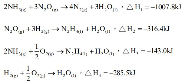 14. 試求 1 莫耳 N2H4(l) 燃燒生成 N2(g) 及 H2O(l) 的燃燒熱為若干 kJ?(2分)