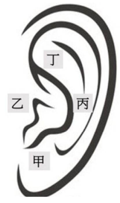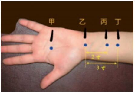 61.下圖中何者為手厥陰心包經之絡穴?(A)甲 (B)乙 (C)丙 (D)丁
