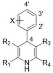 68.下列 1,4-dihydropyridine 鈣離子通道抑制劑中(結構通式如下圖),何者之取代基 R1≠R4?