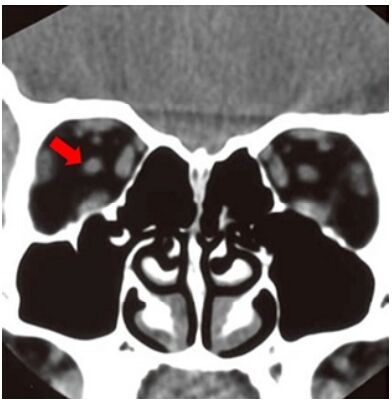 59.9 歲男性。下圖為其 T2 加權影像。箭頭所指其最適當的診斷為何?