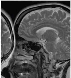 62.腦部的磁振影像如下圖,出現了後腦勺干擾腦部的影像,若要消除此一干擾,應如何修改掃描參數?