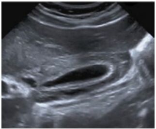 (A)膽結石 (B)膽囊壁水腫 (C)膽囊腫瘤 (D)正常腎臟