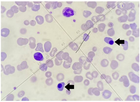 (A)nucleated RBC (B)small lymphocyte (C)monocyte (D)plasma cell