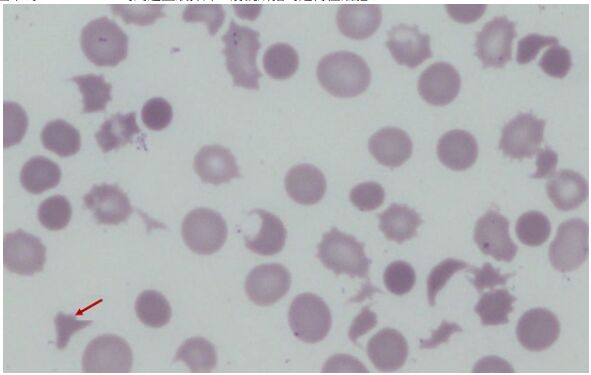 17.周邊血液抹片經 Giemsa 染色後如圖所示,下列何者最適合描述視野下紅血球的特徵?