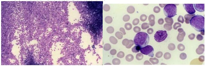 35.某白血病病患的骨髓抹片如圖所示,經流式細胞儀分析,其 blast 之細胞表面標記的結果為 CD33(+)、 CD117(+),則此病人最有可能罹患下列何種疾病?