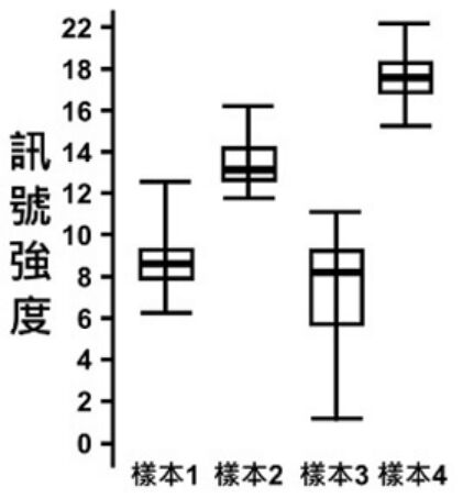 (A)正常化/標準化(normalization) (B)去除各樣本的極端值,減少差異 (C)以 Student's t-test 對基因在各樣本間進行顯著差異分析 (D)忽略訊號變異最大的第 3 樣本後,再進行分析