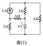 3.如圖(1)所示電路,4V 電壓源之功率約為何?(A)供給 3.56W (B)吸收 3.56W (C)供給 0.89W (D)吸收 0.89W