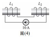 2. 如圖(4)所示,設有兩串聯之電感器 L1 及 L2,其中 L1=L2=4H,兩者之間耦合係數為 0.5,則兩電感器所儲存的總能量為多少?