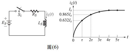 6. 如圖(6)所示之暫態電路及電流 iL(t)時間響應圖,電流 IS=10A,時間常數 τ 為 0.02 秒。已知電阻 RS=4Ω,且電 感在開關 S1 閉合前無儲存能量,當時間為零時(t=0 秒)開關 S1 閉合(導通),電感 LS 為何?