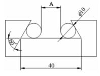 70. 有一 60 度鳩尾形槽如下圖,內肩角距為 40mm,圓桿直徑 10mm,則其A 值應為