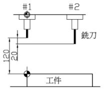 240. (本題刪題)如圖所示,欲設定 G43 之刀長補正值,當工作座標系之 Z 值設為-120.0 時,則下列補正值何者正確? (A)H1=0.0 (B)H1=-120.0 (C)H2=20.0 (D)H2=-100.0 。