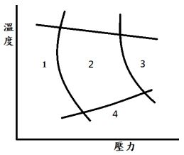 9. 如下圖所示為塑膠射出成形壓力與溫度圖,為能使產品生產正常,則應使射出參數控制在那一範圍?