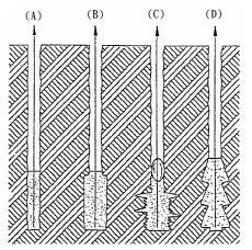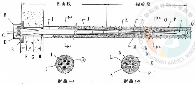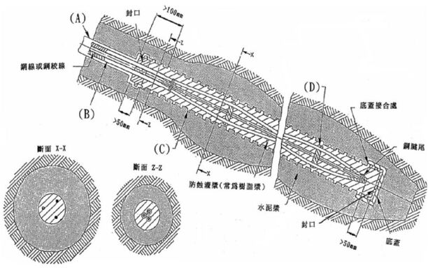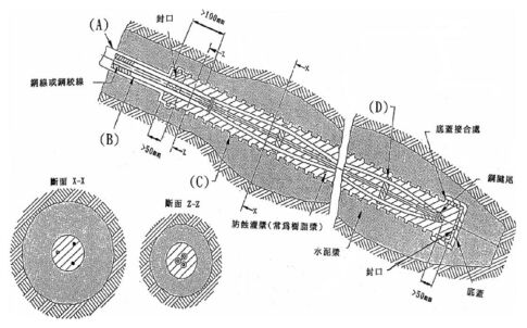 (A)抗張材 (B)護管 (C)鄰近地層 (D)漿體 。