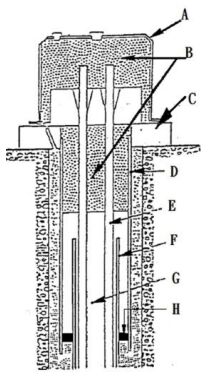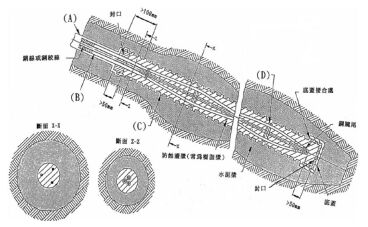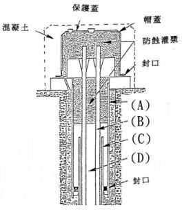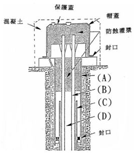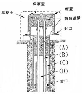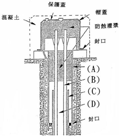 (A)鋼管 (B)混凝土 (C)水泥漿 (D)防蝕材料 。